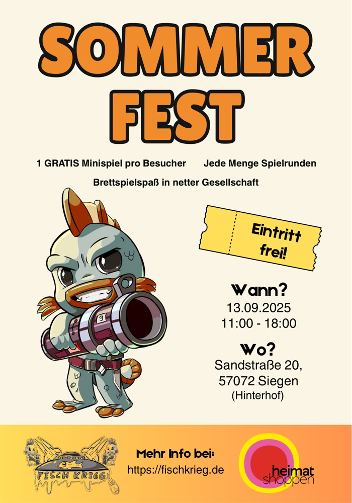 Fischkrieg Siegen Sandstraße 20, Siegen, NRW, GermanyJeden Mittwoch (außer an Feiertagen) findet unser offener Brettspielabend statt. Ab 18:00 bis 22:00 könnt hier euchhier treffen, klönen und zocken. Wir haben eine offene Demospielecke, aber selbstverständlich dürft ihr […]